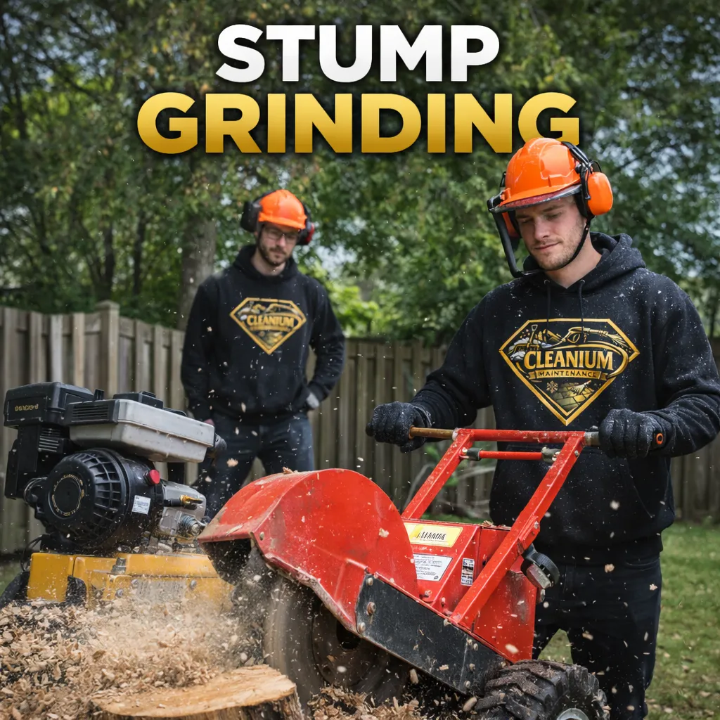 Cleanium Maintenance offers efficient stump grinding to remove unwanted stumps and restore clean, usable outdoor space.