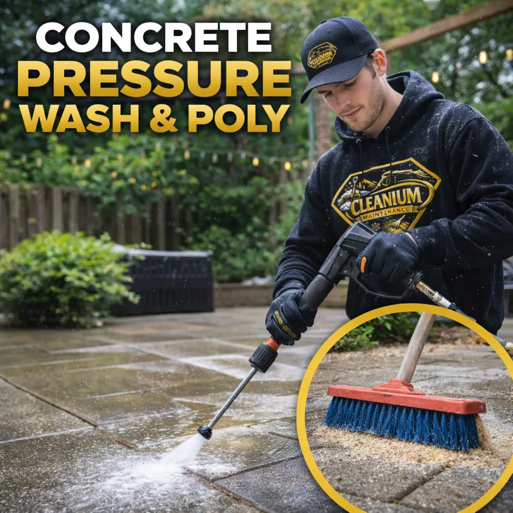 Concrete cleaning plus wash + polymeric sand options to refresh surfaces and improve overall finish.