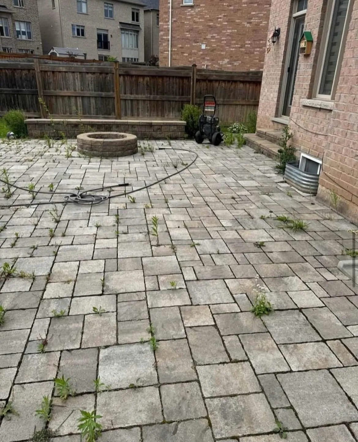 Targeted power washing for interlock/pavers to remove grime and buildup—ideal before re-sanding.